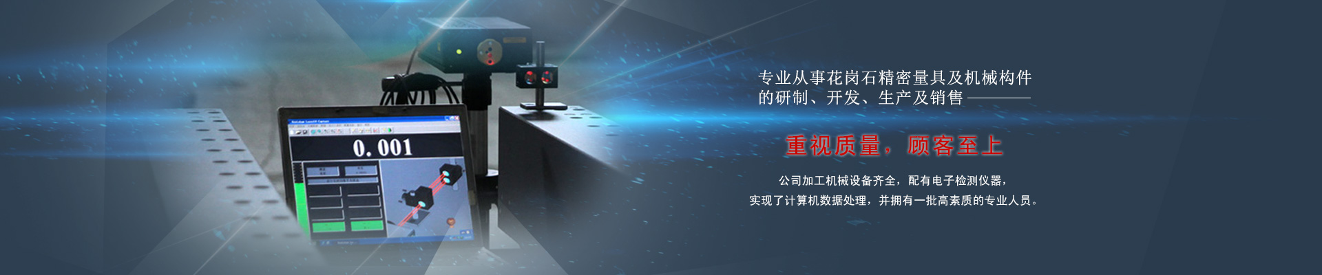 公司加工機(jī)械設(shè)備齊全,配有電子檢測(cè)儀器,實(shí)現(xiàn)了計(jì)算機(jī)數(shù)據(jù)處理,并擁有一批高素質(zhì)的專(zhuān)業(yè)人員。主要產(chǎn)品包括:花崗石檢測(cè)平臺(tái)、花崗石量具、花崗石機(jī)械構(gòu)件等。產(chǎn)品應(yīng)用于超精密加工中心,高精度工業(yè)檢測(cè)設(shè)備,工業(yè)自動(dòng)化設(shè)備及醫(yī)療器械設(shè)備等。